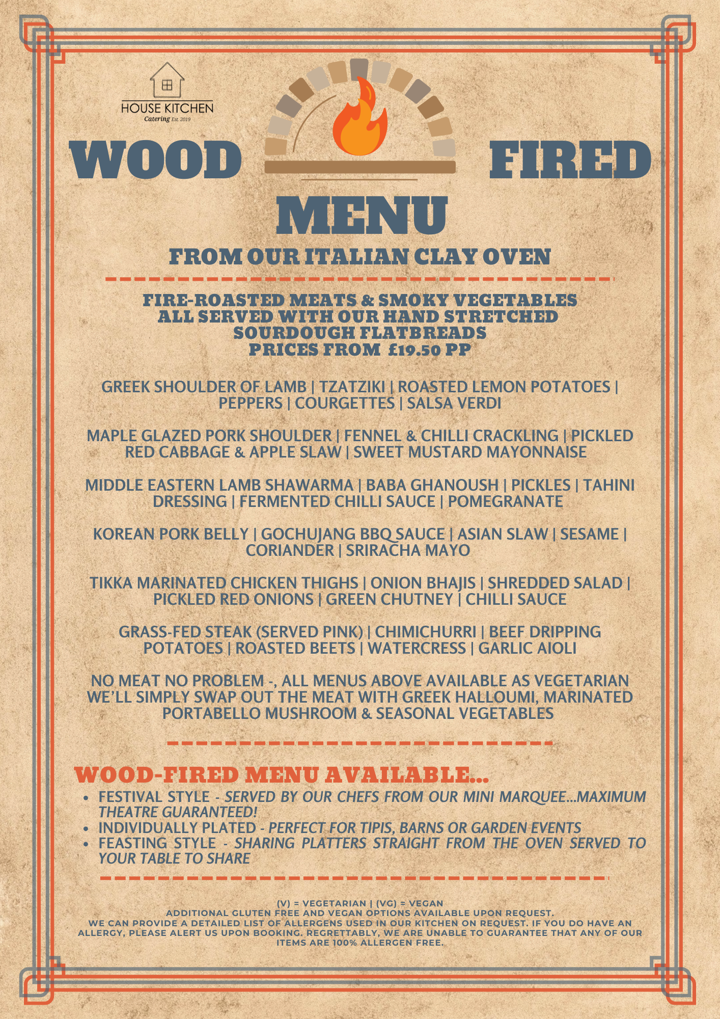 Wood-fired menu